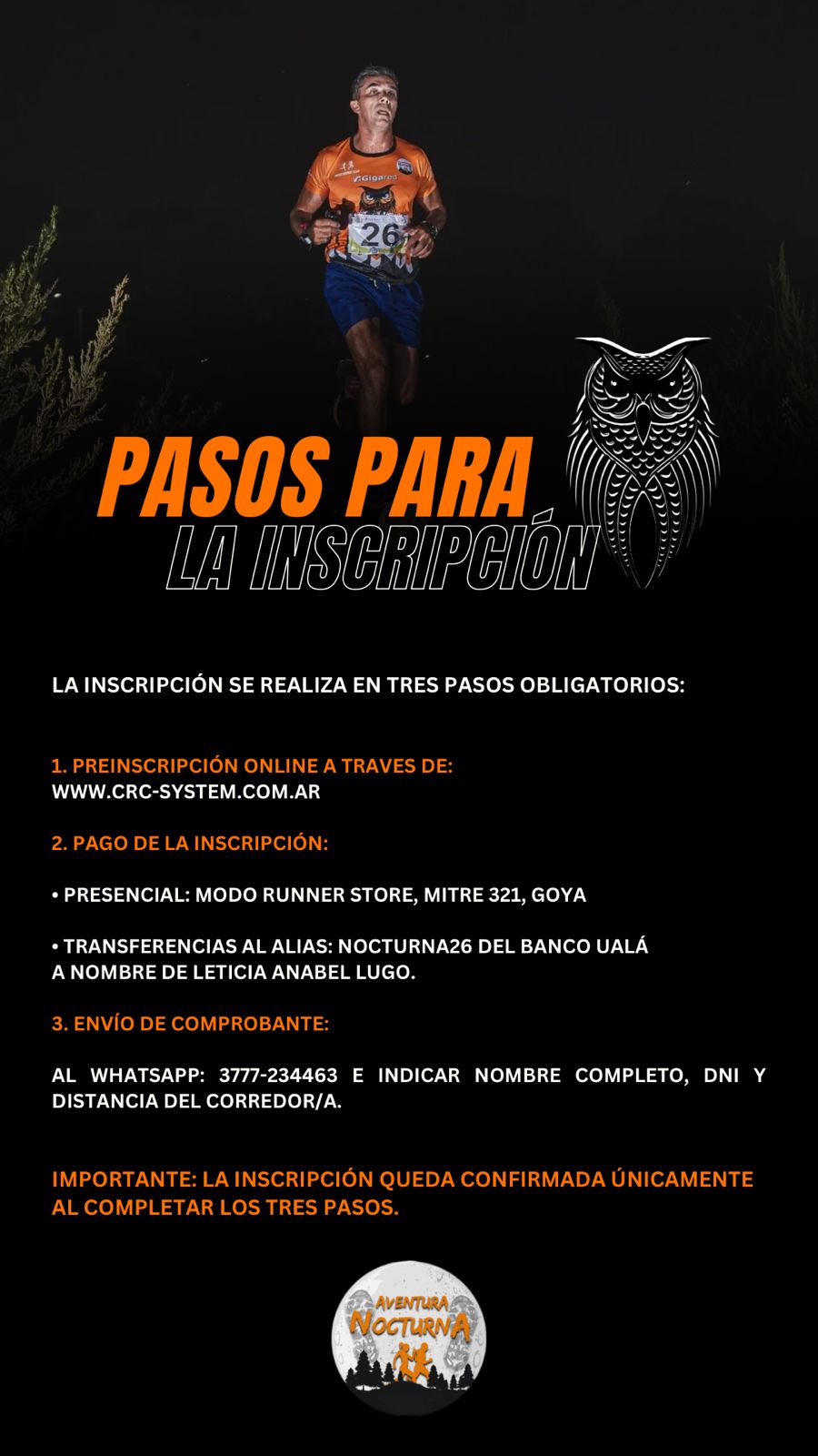 IMPORTANTE!!! HASTA QUE NO SE COMPLETEN LOS 3 PASOS, EL PARTICIPANTE NO ESTA INSCRIPTO